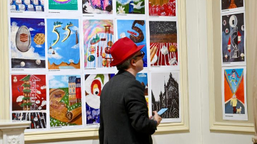 4月9日,在乌兹别克斯坦努库斯,人们参观萨维茨基国家艺术博物馆。