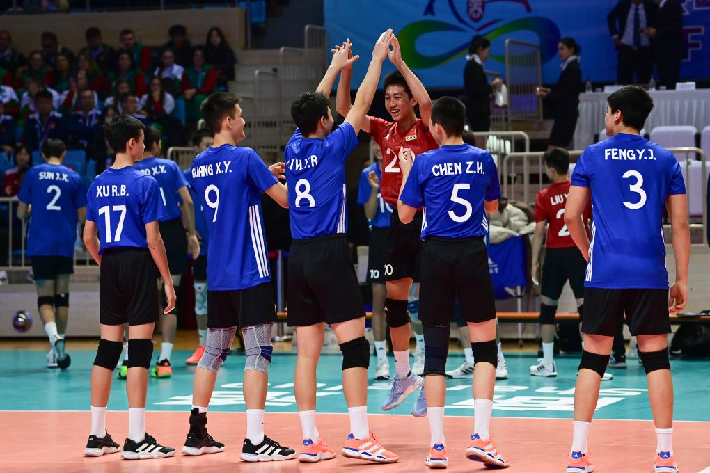 12月5日,2025年U15世界中学生排球锦标赛在陕西商洛开赛。在揭幕赛中,中国男子1队2:0战胜智利队。图为中国队员在赛前入场时互动。新华社记者 邹竞一 摄