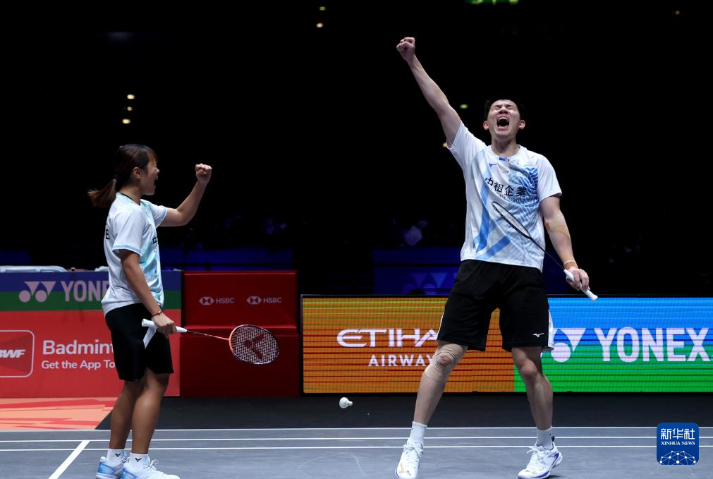 当地时间3月8日,在英国伯明翰举行的全英羽毛球公开赛混双决赛中,中国台北组合叶宏蔚/詹又蓁2比0战胜法国组合吉凯尔/德尔吕,获得冠军。