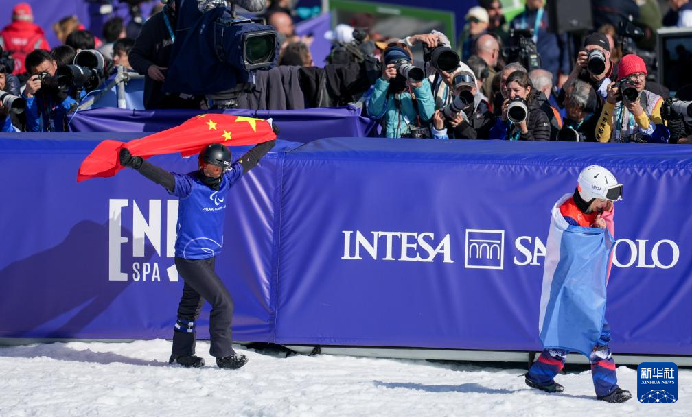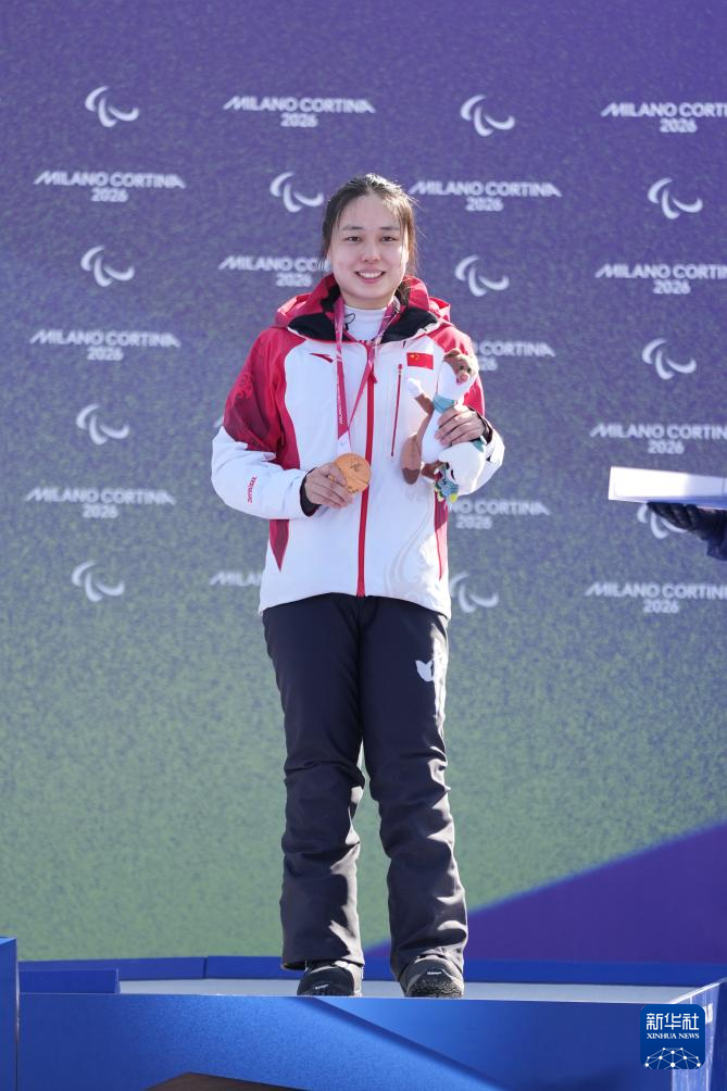 当地时间3月8日,在意大利科尔蒂纳举行的米兰-科尔蒂纳冬残奥会单板滑雪女子障碍追逐LL2级比赛中,中国选手王心雨获得季军。