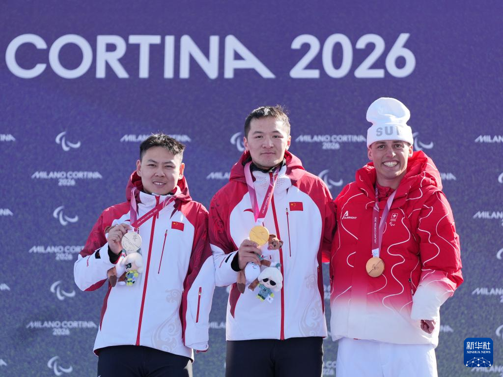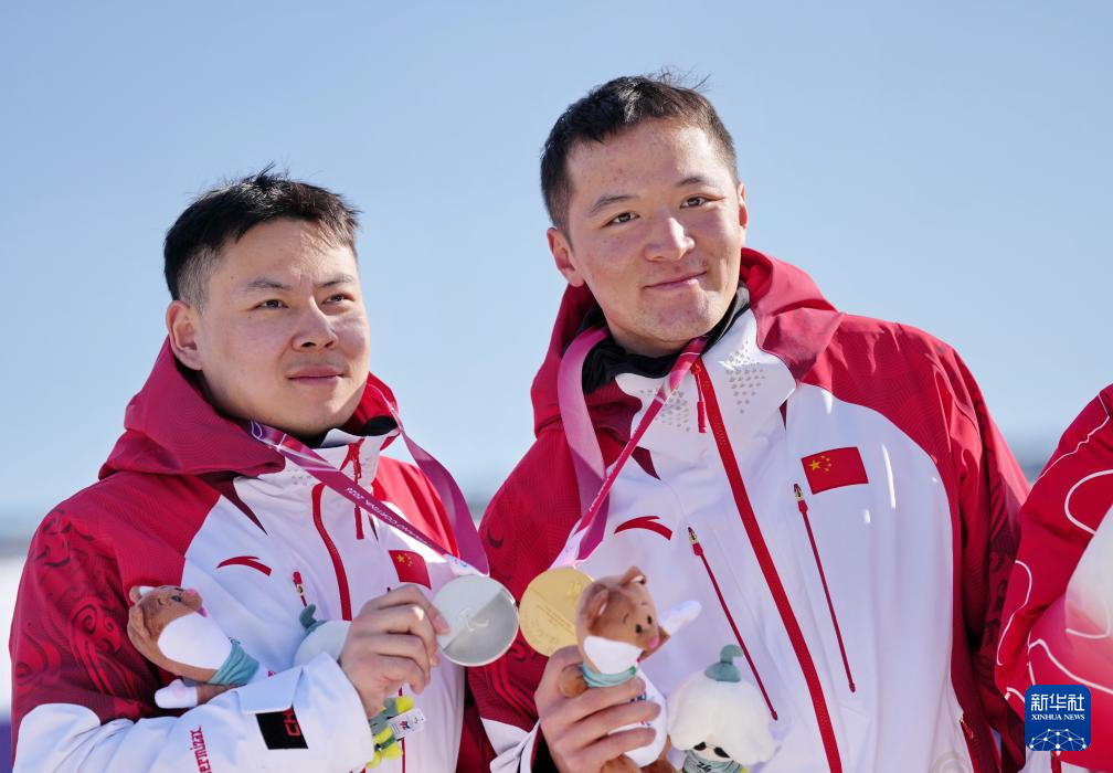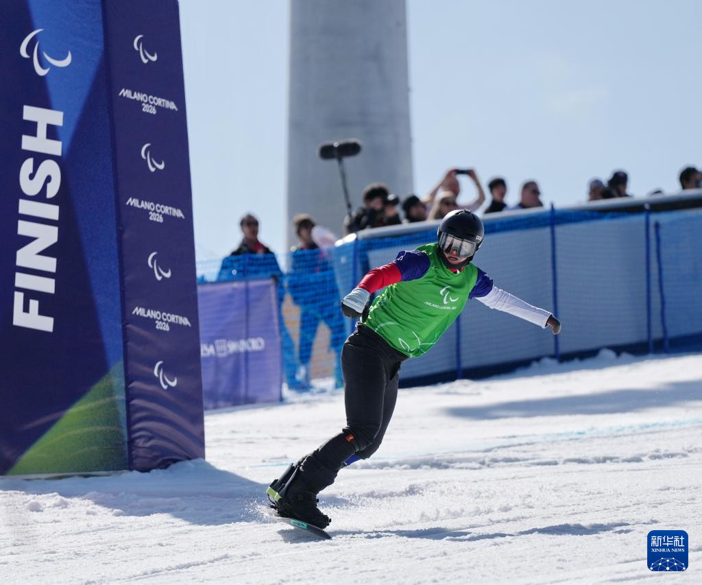 当地时间3月8日,在意大利科尔蒂纳举行的米兰-科尔蒂纳冬残奥会单板滑雪男子障碍追逐UL级比赛中,中国选手纪立家与朱永钢包揽冠亚军。