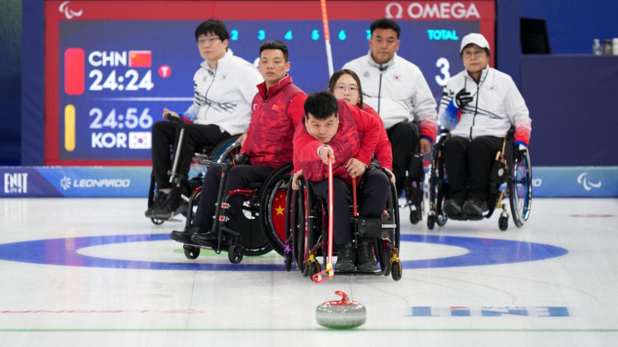 冬残奥会——轮椅冰壶混合团体循环赛:中国队胜韩国队
