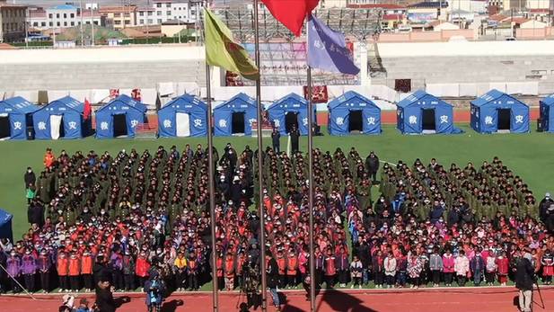 當日,青海省果洛藏族自治州瑪多縣地震災區中小學全面復課,來自瑪多縣民族寄宿制中學的八年級學生曲邁卓瑪與870多位同學一起,在帳篷學校迎來了復課。