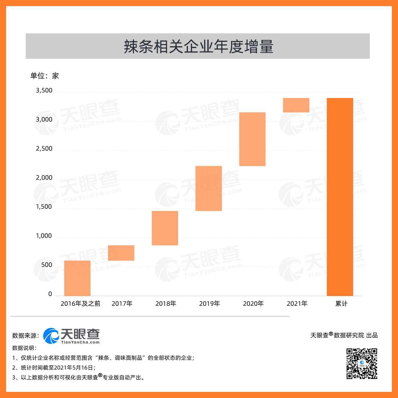 ????? 天眼查數據顯示,我國2020年新增辣條相關企業數量超900家,同比增長19%。截至5月16日,我國今年新增辣條相關企業數量已超過240家。