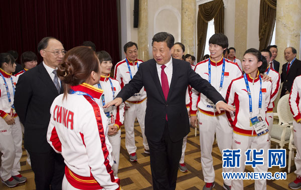 ??? 2月7日,中共中央總書記、國家主席、中央軍委主席習(xí)近平在俄羅斯索契親切看望參加第二十二屆冬季奧林匹克運動會的中國體育代表團。這是習(xí)近平同運動員親切交流。新華社記者 黃敬文 攝