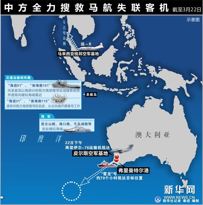 圖表:中方全力搜救馬航失聯客機