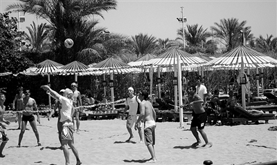 非洲青年在舉行沙灘排球比賽。