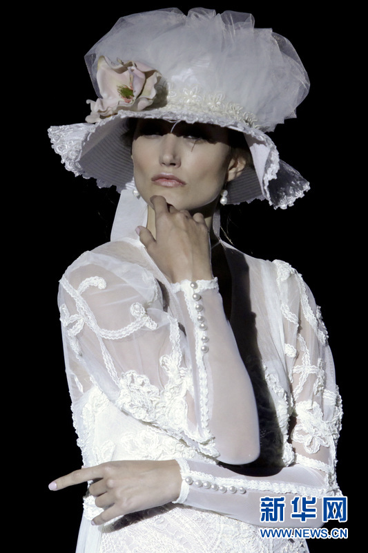 模特在T臺上展示西班牙女服裝設計師 Inmaculada Garcia的婚紗作品。Inmaculada Garcia同時也是來自巴塞羅那當地的一個婚紗品牌。