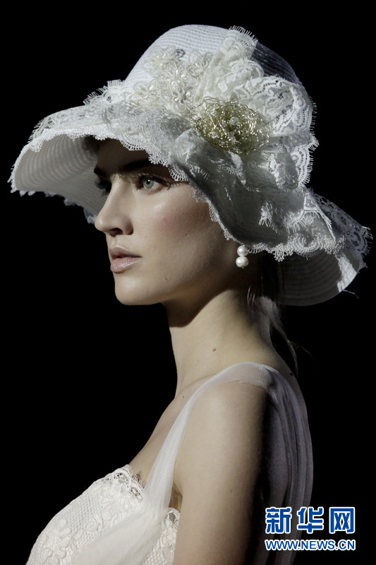 模特在T臺上展示西班牙女服裝設計師 Inmaculada Garcia的婚紗作品。Inmaculada Garcia同時也是來自巴塞羅那當地的一個婚紗品牌。