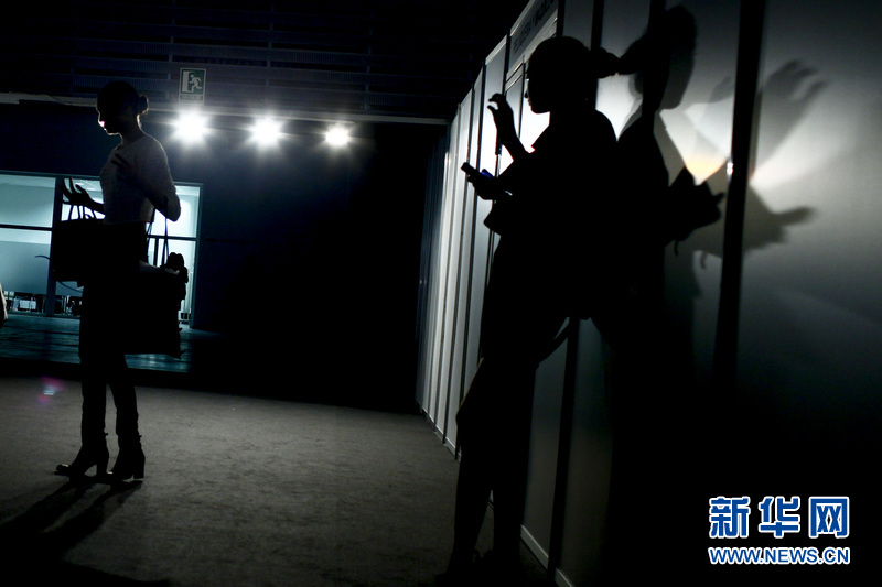 場外正在準(zhǔn)備登臺展示婚紗的模特。