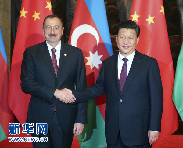 ????習(xí)近平表示,中阿兩國友好合作關(guān)系在平等互利、相互尊重的基礎(chǔ)上不斷發(fā)展。兩國政治關(guān)系牢固,互信水平高,務(wù)實(shí)成果豐碩。中方贊賞阿方在涉及中國核心利益的問題上始終給予的堅定支持,支持阿塞拜疆人民根據(jù)本國國情選擇的發(fā)展道路,支持阿方維護(hù)國家主權(quán)、獨(dú)立,促進(jìn)經(jīng)濟(jì)發(fā)展的努力。中方愿同阿方一道,密切兩國政府、立法機(jī)構(gòu)、政黨、各部門交往,增進(jìn)政治互信。中方鼓勵本國企業(yè)同阿方在工程承包、基礎(chǔ)設(shè)施建設(shè)、交通、電信、新能源等領(lǐng)域開展合作,鼓勵兩國人文交流,愿同阿方加強(qiáng)在國際和地區(qū)事務(wù)中的溝通和協(xié)調(diào)。