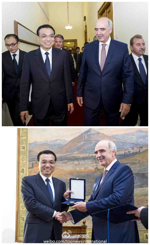 ??? 新華網(wǎng)北京6月20日電 據(jù)新華社“新國際”微博報道,19日下午,李克強總理在希臘議會大廈會見希臘議長米馬拉基斯,并被授予希臘議會金質(zhì)勛章。李克強說,立法機構(gòu)交流合作是中希全面戰(zhàn)略伙伴關(guān)系的重要組成部分。中方愿同希臘議會和政黨加強交流合作,希望希臘議會繼續(xù)為促進(jìn)中希合作助力添彩。