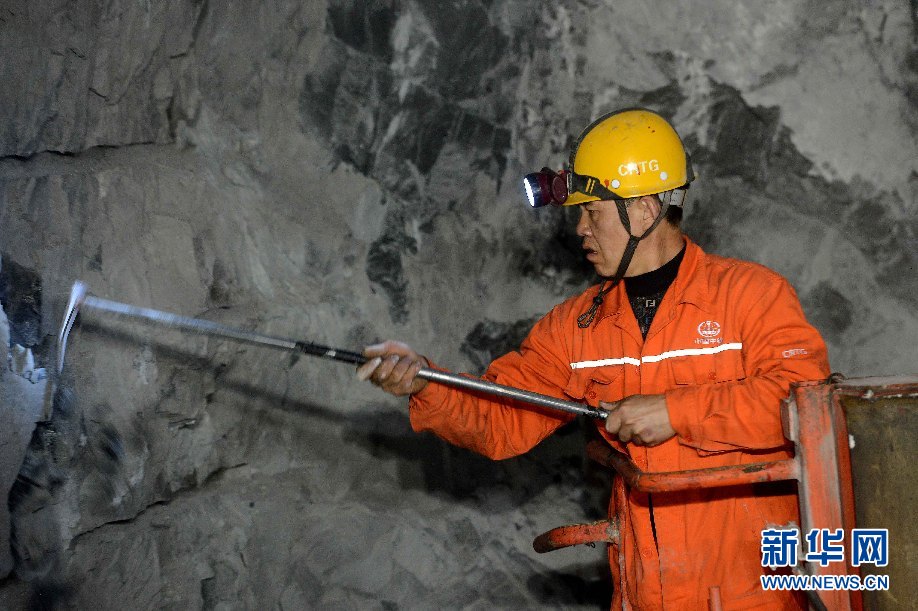 7月5日,工人們在烏茲別克斯坦安革連至琶布鐵路隧道緊張工作。(沙達提 攝)