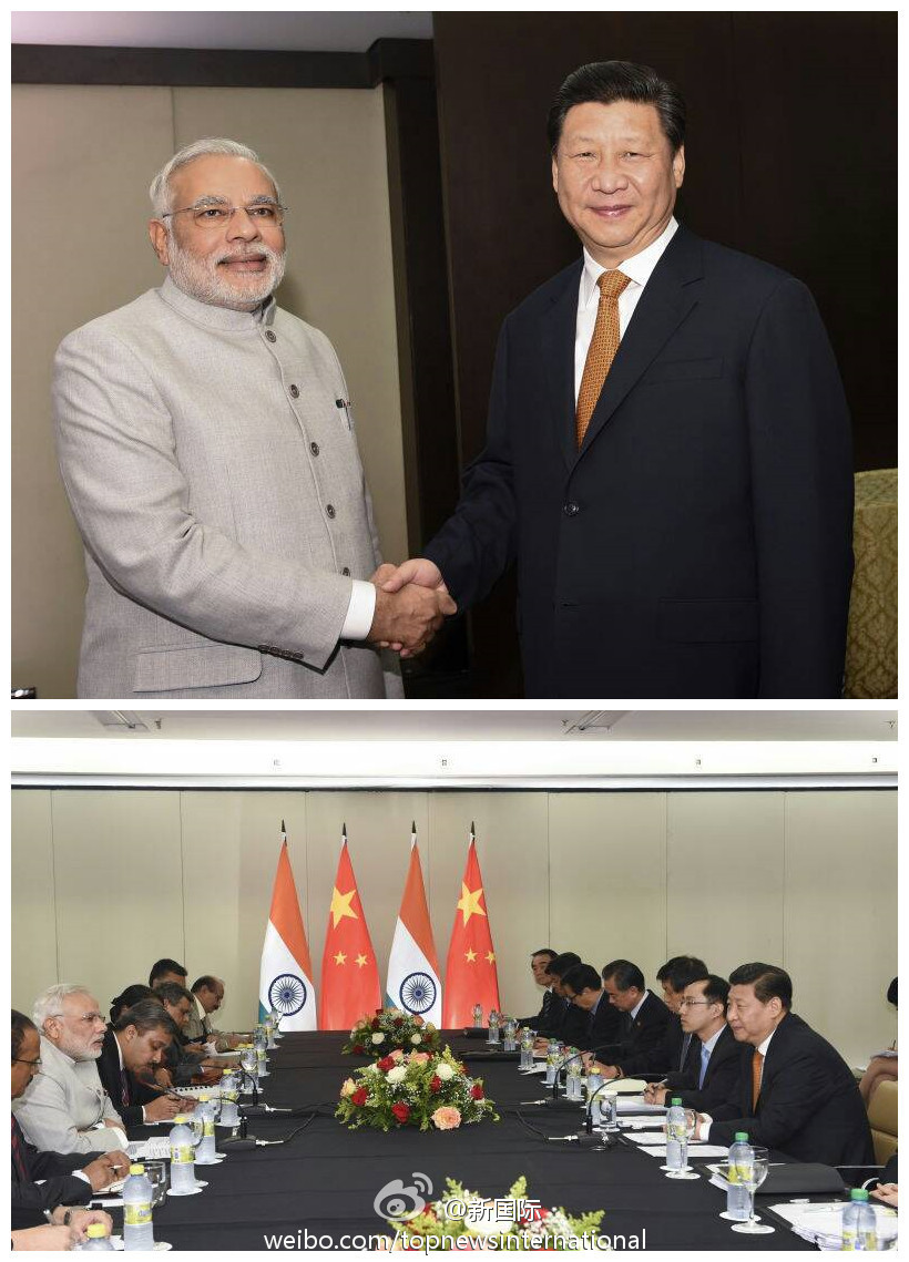 ???? 新華網(wǎng)北京7月15日電 據(jù)新華社“新國際”微博報道,習近平主席14日在巴西會見印度總理莫迪。習近平表示,印中都是世界重要一極,擁有許多戰(zhàn)略契合點。中印用一個聲音說話,全世界都會傾聽。中印攜手合作,全世界都會關(guān)注。無論從雙邊、地區(qū)還是全球?qū)用婵?,中印都是長久戰(zhàn)略合作伙伴,而非競爭對手。