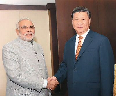 習(xí)近平強(qiáng)調(diào),中印雙方要加強(qiáng)交往,我期待著在不久的將來(lái)訪問(wèn)印度,歡迎莫迪總理早日訪華。雙方要對(duì)接各自發(fā)展戰(zhàn)略,建立更加緊密的發(fā)展伙伴關(guān)系,擴(kuò)大文化、教育、宗教、青年等領(lǐng)域友好交流,在鐵路等基礎(chǔ)設(shè)施建設(shè)、產(chǎn)業(yè)投資等領(lǐng)域打造一批示范性項(xiàng)目,擴(kuò)大服務(wù)貿(mào)易、投資、旅游等領(lǐng)域合作,逐步實(shí)現(xiàn)雙邊貿(mào)易總體平衡和可持續(xù)發(fā)展,推進(jìn)孟中印緬經(jīng)濟(jì)走廊建設(shè),引領(lǐng)區(qū)域經(jīng)濟(jì)一體化進(jìn)程。中印要加強(qiáng)多邊領(lǐng)域合作,共同參與國(guó)際規(guī)則制定,增強(qiáng)發(fā)展中國(guó)家的話(huà)語(yǔ)權(quán)。中方歡迎印方作為創(chuàng)始成員加入亞洲基礎(chǔ)設(shè)施投資銀行。雙方要以積極和向前看的態(tài)度管控和處理分歧,通過(guò)友好協(xié)商,盡早找到公平合理、雙方都能接受的邊界問(wèn)題解決辦法。在最終解決前,共同維護(hù)好邊境地區(qū)和平安寧。