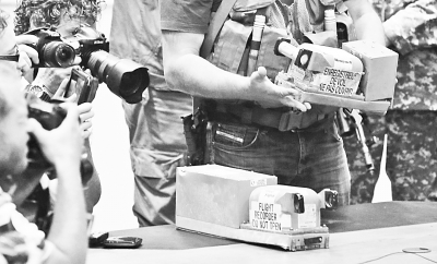 圖為7月22日凌晨,在烏克蘭頓涅茨克州,媒體記者在移交儀式上拍攝馬航MH17航班客機黑匣子。新華社發