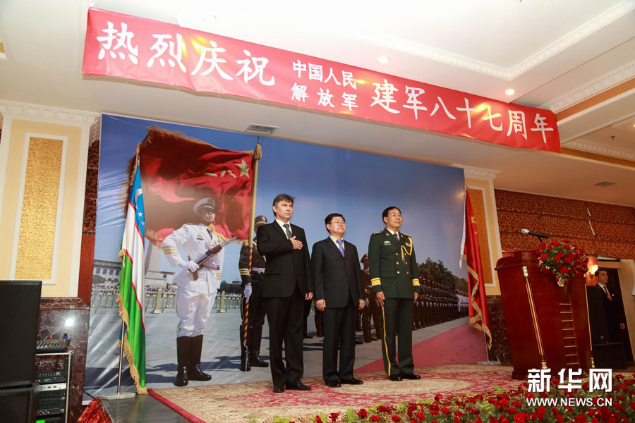 ????中國駐烏茲別克斯坦使館舉行建軍節招待會 (新華社發 記者沙達提)