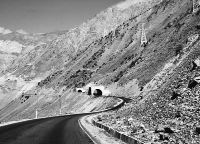 連接塔吉克斯坦南部和北部的塔烏公路是利用上合組織框架內(nèi)中國(guó)政府提供的優(yōu)惠信貸修復(fù)的。圖為塔烏公路一段。本報(bào)記者 黃文帝攝