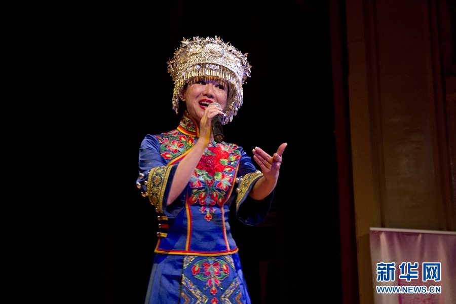 來自中南民族大學的演員在臺上表演。新華網發 Xesco攝