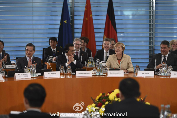 ????新華網北京10月10日電 據新華社“新國際”微博報道,“Happy Birthday!”在第三輪中德政府磋商會上,德國總理默克爾開場先向中方農業部長祝福生日!她說:雖然你不能和家人一起過,但我們會讓你過個愉快的生日。李克強總理提議大家舉水杯為這特別的生日送上祝福,還風趣地說祝福農業部長,意味著有保障糧食安全的基礎。