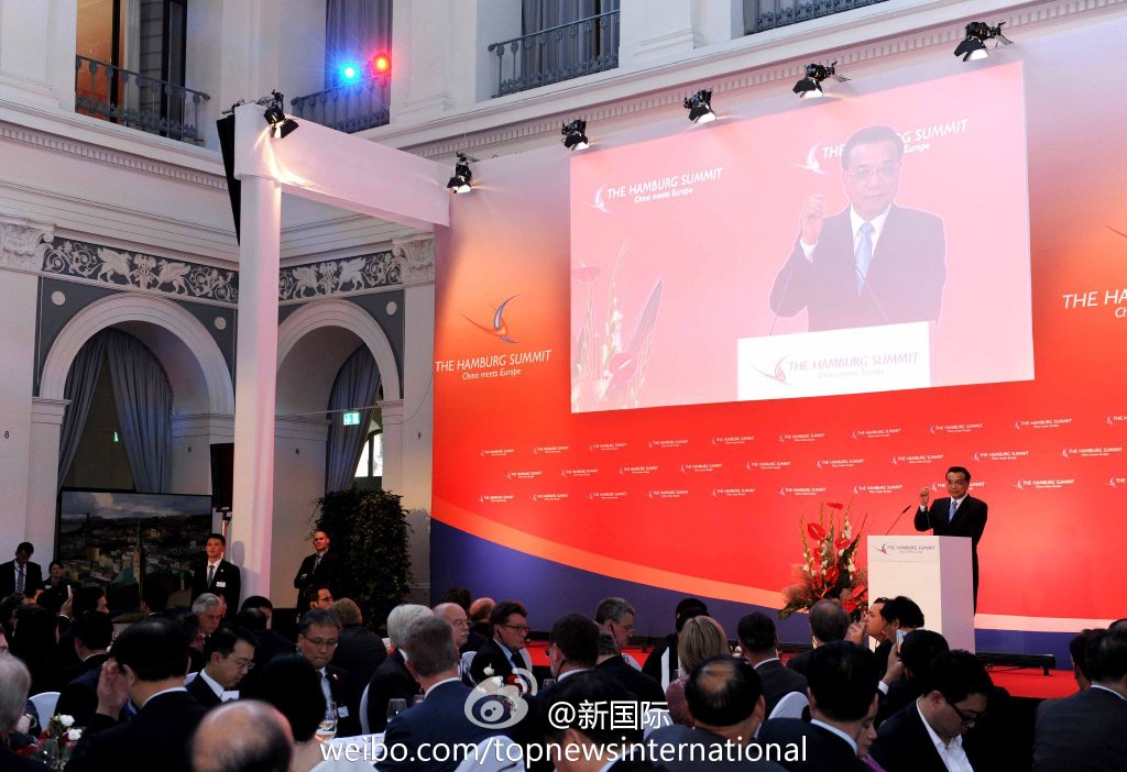 ????新華網(wǎng)北京10月12日電 據(jù)新華社“新國際”微博報(bào)道,國務(wù)院總理李克強(qiáng)11日在中歐論壇漢堡峰會上發(fā)表演講說,中國是最大的新興市場國家,歐盟是最大的發(fā)達(dá)經(jīng)濟(jì)體,“最大”與“最大”交融、一切都有可能,“新興”與“發(fā)達(dá)”攜手、優(yōu)勢就會倍增,中歐在新興和發(fā)達(dá)經(jīng)濟(jì)體合作中可以成為典范。