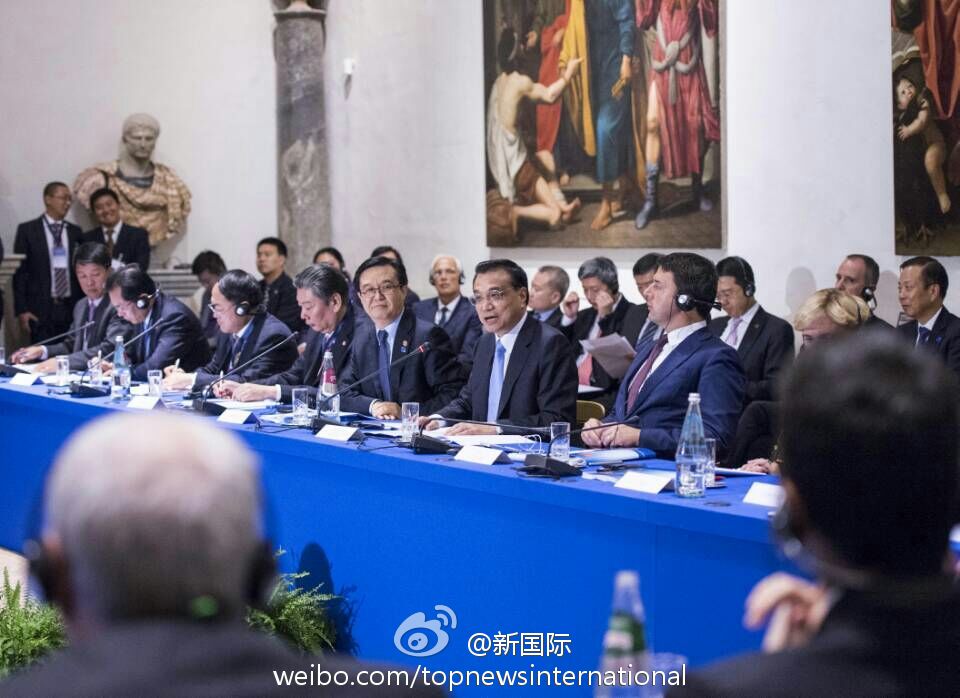 ????新華網北京10月15日電 據新華社“新國際”微博報道,中意兩國總理14日在羅馬共見兩國企業家代表,李克強說,企業界是推動兩國合作的主體和生力軍。當前中意都進入了依靠創新驅動的時代,這不僅需要科技創新,而且需要人文精神。希望兩國企業家爭做現代馬可·波羅,發揮互補優勢,推動企業間合作邁上創新的路程。