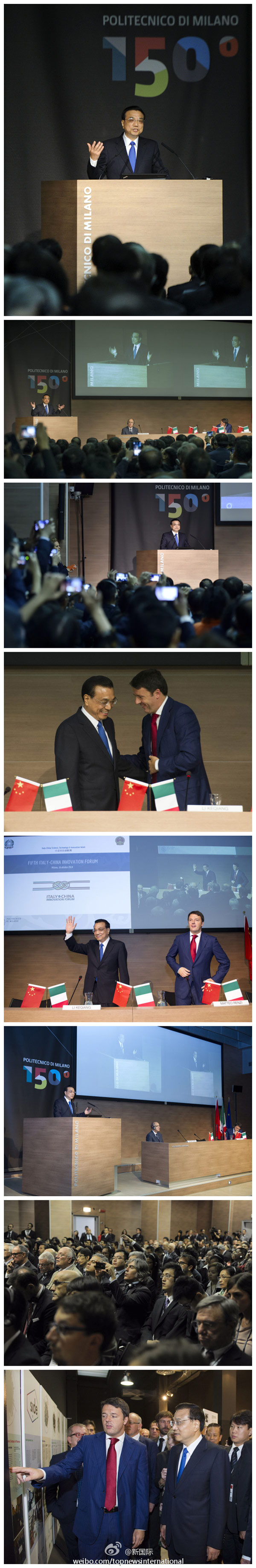 ????新華網(wǎng)北京10月16日電 據(jù)新華社“新國際”微博報道,李克強(qiáng)總理16日在意大利總理倫齊陪同下在米蘭理工大學(xué)出席中意創(chuàng)新周大會時說,我們的時代是創(chuàng)新的時代,科技創(chuàng)新不僅來自對科學(xué)的了解,對技術(shù)的把握,也源自創(chuàng)意,希望中意青年用東西方智慧碰撞出更多“奇思妙想”,讓創(chuàng)意促進(jìn)創(chuàng)新,進(jìn)而提升兩國產(chǎn)業(yè)競爭力。