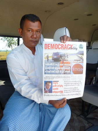 緬甸一份名為Democracy Today的報紙刊登了李克強總理的署名文章。(新華社記者 桂濤攝)