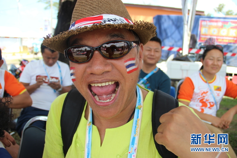 ??? 11月16日,泰國民眾為泰國運動健兒加油。中國體育代表團16日在泰國普吉舉行的第四屆亞洲沙灘運動會上勇奪2枚金牌和2枚銅牌。當天比賽全部結束時,中國隊以3金2銀5銅的成績暫列獎牌榜第五,東道主泰國隊以9金11銀12銅的成績暫列金牌榜和獎牌榜第一。新華社發(塔納攝)