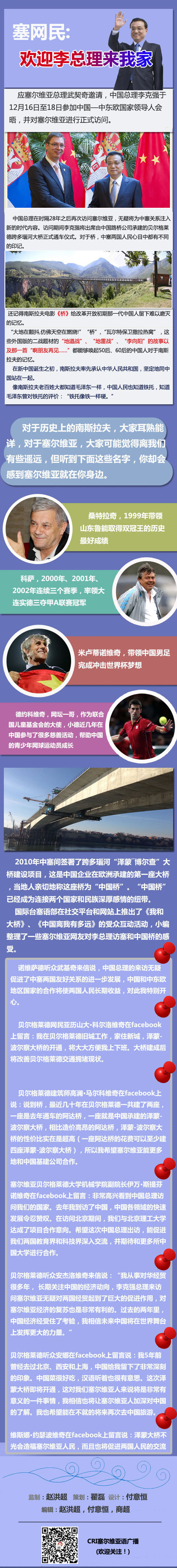 應塞爾維亞總理武契奇邀請,中國總理李克強于12月16日至18日參加中國-中東歐領導人會晤,并對塞爾維亞進行正式訪問。