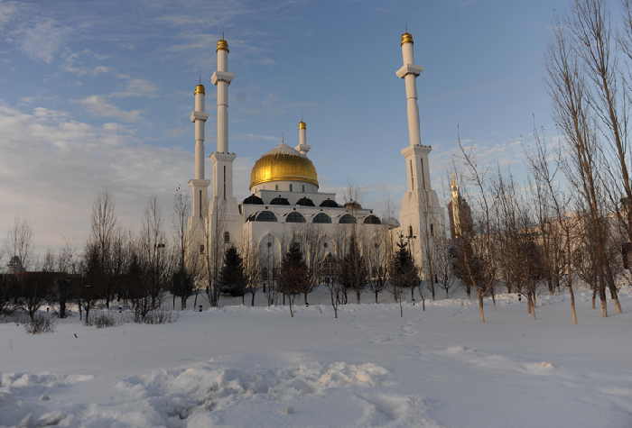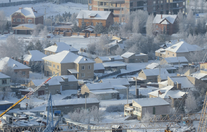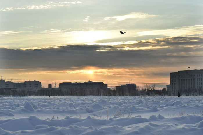 總理抵達當天的阿斯塔納。中新社 劉震 攝
