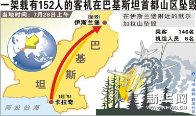 巴基斯坦藍(lán)色航空公司一架由卡拉奇飛往伊斯蘭堡的客機(jī)在伊斯蘭堡附近山區(qū)墜毀,機(jī)上152名乘客和機(jī)組人員全部遇難。詳細(xì)