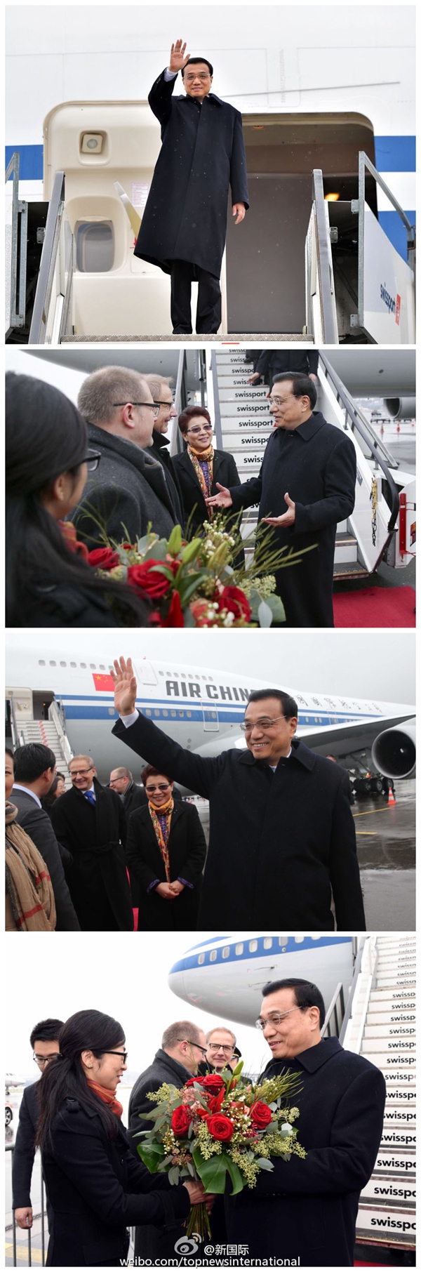 ????新華網(wǎng)北京1月20日電? 據(jù)新華社“新國際”微博報道,當?shù)貢r間20日下午,李克強總理抵達瑞士,出席世界經(jīng)濟論壇年會并對瑞士進行工作訪問。李克強說,我期待同各界深入交流,為維護世界和平穩(wěn)定,促進經(jīng)濟強勁可持續(xù)平衡增長作出努力。他說,將繼續(xù)擴大中瑞自貿(mào)協(xié)定成果,將金融打造成兩國合作新亮點。