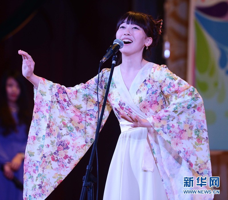 4月28日,在烏內務部文化宮禮堂活動現場,塔什干孔子學院的ARUXAN(中文名:阿魯)在參加比賽。新華網記者 沙達提攝