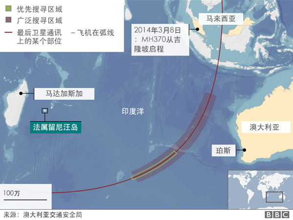 此前搜尋MH370航班的范圍主要集中在印度洋南部靠近澳大利亞西海岸的海域,而法屬留尼汪島位于這一區域以西約4000多公里外。