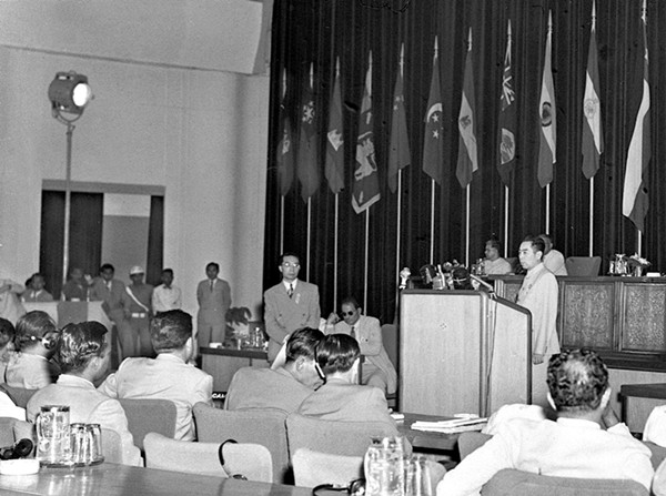 1955年4月18日至24日,在印度尼西亞萬隆舉行首屆亞非會議,即萬隆會議。中國代表團團長周恩來總理在大會上發言。(資料照片)