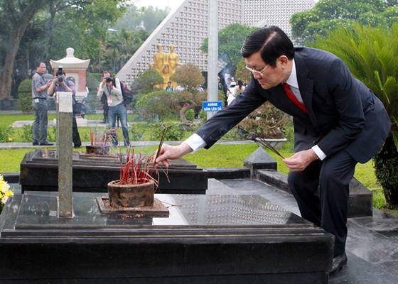 2014年5月7日,越南國家主席張晉創在奠邊府烈士陵園向烈士敬香。