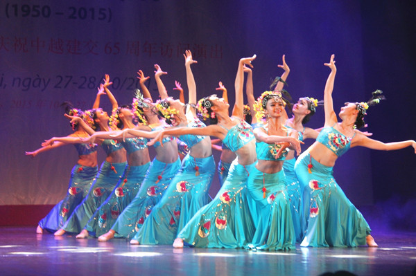 2015年10月27日,中國(guó)云南省藝術(shù)團(tuán)在越南首都河內(nèi)表演傣族舞蹈《美的祝?!罚瑧c祝中越建交65周年。