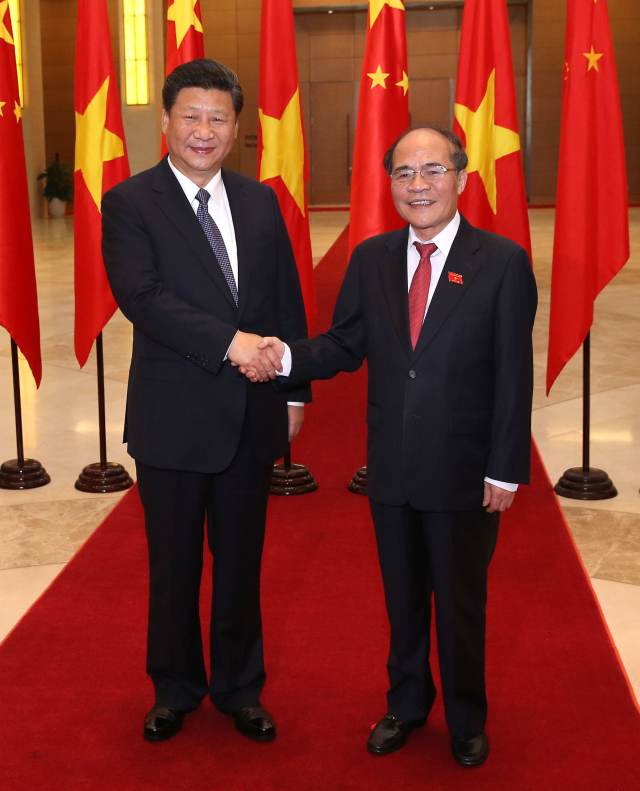 11月6日,中共中央總書記、國家主席習近平在河內會見越南國會主席阮生雄。新華社記者龐興雷攝