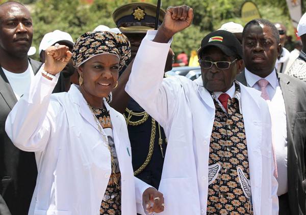 2014年12月6日,總統穆加貝和第一夫人格蕾絲在首都哈拉雷出席執政黨民盟會議。(新華社/路透)