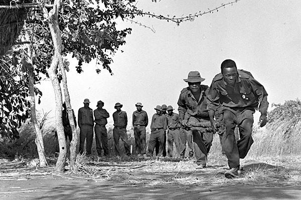1970年,津巴布韋游擊隊戰士練習戰場救護的資料圖片。(新華社發)