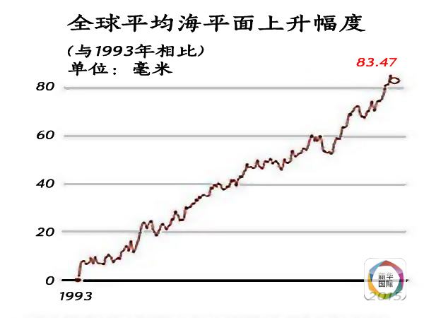 美國(guó)國(guó)家航空航天局戈達(dá)德航天中心利用激光技術(shù)監(jiān)測(cè)海平面上升狀況,發(fā)現(xiàn)全球海平面比1993年平均升高超過(guò)83毫米。一些科學(xué)家預(yù)計(jì),到本世紀(jì)末,海平面還將上升2至4英尺(約0.6至1.2米)。