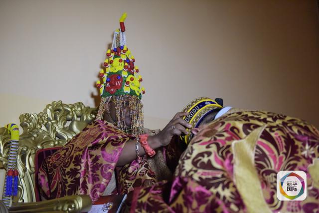 2015年8月15日,尼日利亞拉各斯州伊科羅杜,一場(chǎng)具有濃厚當(dāng)?shù)靥厣募用醿x式在這里舉行。