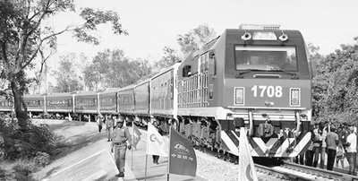 2013年11月28日,安哥拉本格拉鐵路盧埃納至盧奧區(qū)間各車站順利驗交。中國鐵建二十局集團供圖