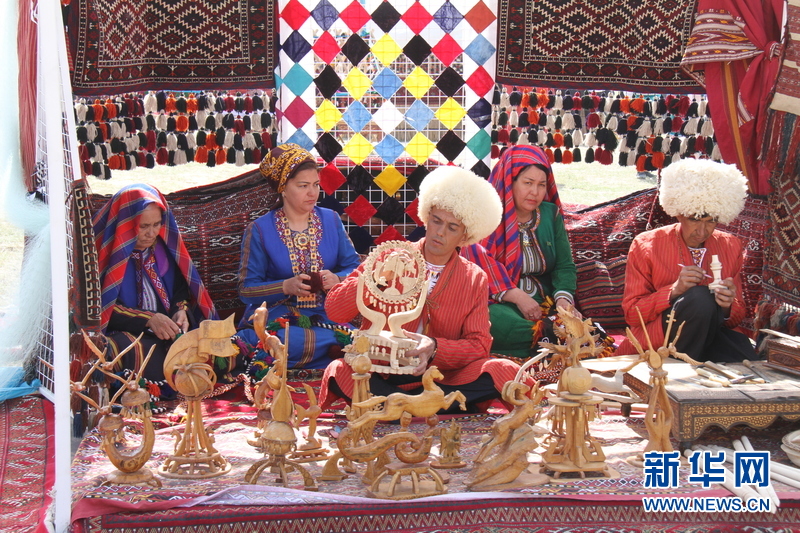 3月21日,在土庫曼斯坦首都阿什哈巴德,當地人在做手工飾品。新華社記者盧敬利 攝