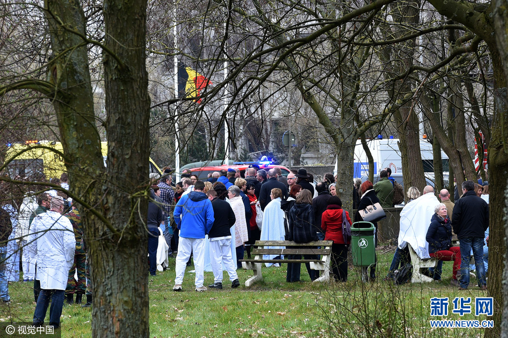 ??? 當?shù)貢r間2016年3月24日,比利時布魯塞爾, Koningin Astrid-Reine Astrid 軍事醫(yī)院發(fā)生天然氣泄漏,民眾緊急疏散,一部分在日前布魯塞爾恐襲中受傷的民眾在此接受治療。圖片來源:視覺中國