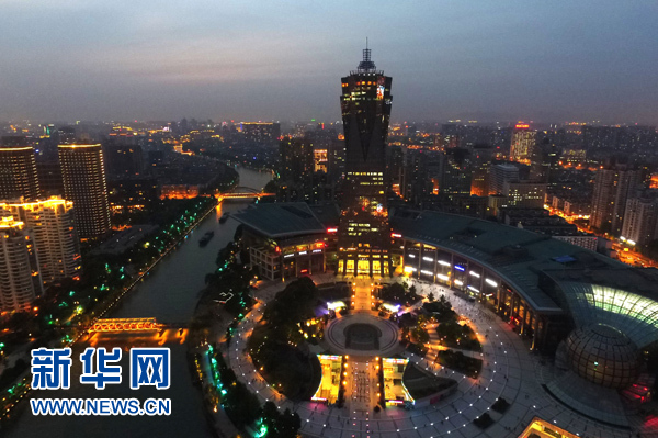 航拍杭州西湖文化廣場附近的京杭大運河夜景(5月4日攝)。杭州自古多橋。斷橋、長橋、錢塘江大橋、復興大橋……古樸文雅輝映現代氣派,透出這座城市融匯古今、靈動開放的底蘊。舉世矚目的二十國集團(G20)領導人第十一次峰會將在這里舉行。有趣的是,這次峰會的會標,也是一座橋——一座由20個成員搭起的“橋”。這會是一座怎樣的橋?它能否緩解當前全球經貿河道上的種種淤塞?它能否跨越發達國家和發展中國家之間的溝溝壑壑? 全球在期待,中國在行動。新華社記者黃宗治攝