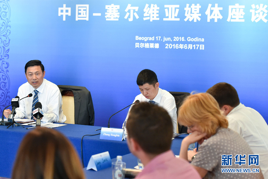 6月17日,在塞爾維亞首都貝爾格萊德召開的中國—塞爾維亞媒體座談會上,中國國務院新聞辦公室副主任郭衛民(后左一)同與會的中塞媒體代表進行交流。當天,由中國國務院新聞辦公室主辦的中國—塞爾維亞媒體座談會在塞爾維亞首都貝爾格萊德舉行,中國國務院新聞辦副主任郭衛民和來自中塞主流媒體的十多位高層人士出席。 新華網記者 錢一 攝