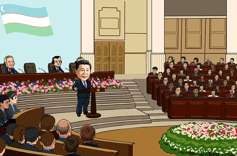 6月22日,正在烏茲別克斯坦訪問的國家主席習(xí)近平在塔什干烏茲別克斯坦最高會(huì)議立法院發(fā)表題為《攜手共創(chuàng)絲綢之路新輝煌》的重要演講,提出構(gòu)建互利合作網(wǎng)絡(luò)、共創(chuàng)新型合作模式、打造多元合作平臺(tái)、推進(jìn)重點(diǎn)領(lǐng)域項(xiàng)目的新主張,為推動(dòng)“一帶一路”向更高水平、更廣空間邁進(jìn)指明了方向。當(dāng)天,習(xí)主席和卡里莫夫總統(tǒng)在塔什干共同出席“安格連-帕普”鐵路隧道的通車視頻連線活動(dòng)。