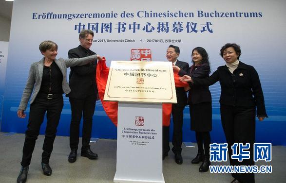 1月11日,在瑞士蘇黎世大學(xué),中宣部副部長(zhǎng)、國(guó)務(wù)院新聞辦主任蔣建國(guó)(右三)等嘉賓為“中國(guó)圖書中心”揭幕。在習(xí)近平主席出訪瑞士前夕,中國(guó)國(guó)務(wù)院新聞辦公室在瑞士舉辦系列文化出版交流活動(dòng),瑞士冬日嚴(yán)寒大地上飄起了濃濃的中國(guó)書香。1月9日,由中國(guó)國(guó)務(wù)院新聞辦主辦,中國(guó)外文局、上海新聞出版發(fā)展公司承辦的中國(guó)主題圖書全球新年展銷月活動(dòng)在瑞士日內(nèi)瓦拉開帷幕。此外,瑞士首個(gè)“中國(guó)圖書中心”揭幕儀式11日在蘇黎世大學(xué)舉行。新華社記者 徐金泉 攝